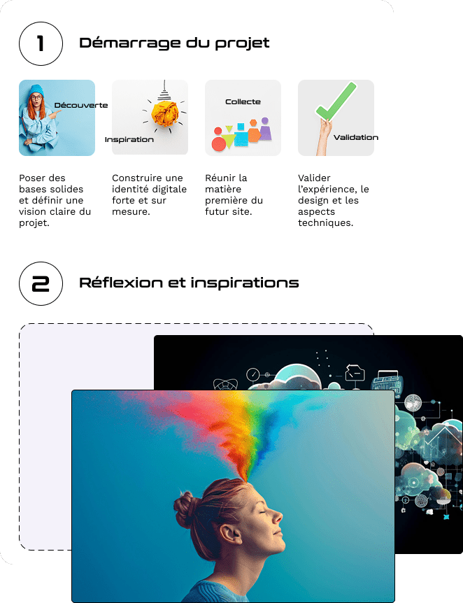 Chaque étape est pensée pour aboutir à un site unique, esthétique et performant — un véritable outil à votre image.
