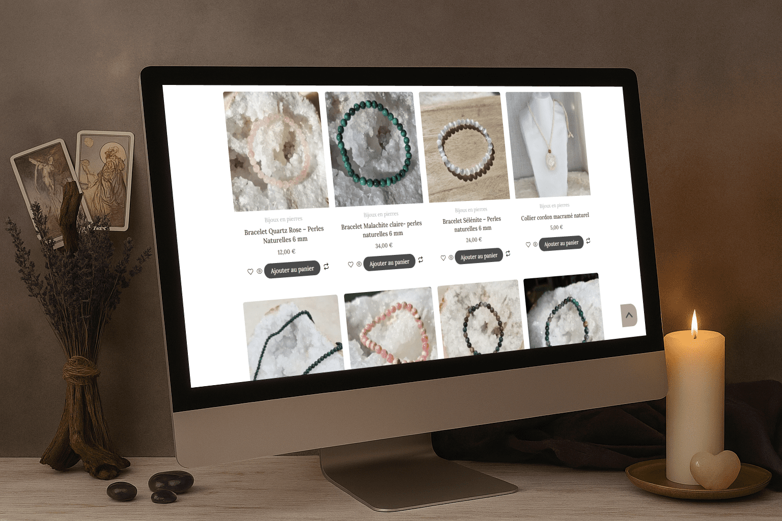 Le client, spécialisé dans la vente de produits spirituels et lithothérapeutiques, souhaitait finaliser la mise en place de sa boutique en ligne sous WooCommerce.